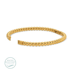 Crafted with a robust stainless steel base, this bangle is meticulously finished with a radiant 18K gold plating, providing the luxurious gleam of solid gold at an accessible price. What truly sets this piece apart is its water resistant quality. You can wear it confidently through daily activities, knowing it's designed to resist tarnishing and discoloration from water, sweat, and humidity. This makes it the ultimate choice for long-lasting, non-tarnish jewelry that stands the test of time and adventure.