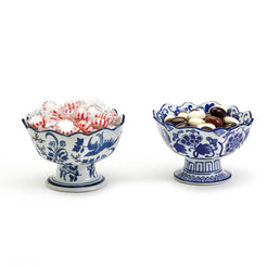 Elevate your gatherings with this hand-painted footed bowl featuring charming blue and white scalloped edges. Available in two exquisite patterns—delicate flowers and graceful birds—each piece adds a touch of artistry and elegance to your table. Perfect for serving or display, its unique design invites conversation and admiration, making every occasion feel special.
