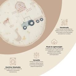 Create a soft landing spot for little ones with this quilted play mat, adorned with cozy prints and stitched textures. Whether it’s for rolling, crawling, or playing, it’s a comfy and cute essential that your baby will love.