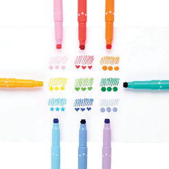 Get ready to stamp, color, and create with Confetti Stamp Double-Ended Markers! This set of 9 double-ended markers brings double the fun to every creative session—each marker has a fine tip on one end for detailed coloring and a confetti stamp on the other for playful shapes. Perfect for coloring books, crafts, and school projects, these stamp markers let kids add bold colors and cute stamped designs to any project. Use them to decorate homemade cards, personalize notebooks, or add fun details to art projects. With shapes like stars, hearts, and smiley faces, each confetti stamp opens up new ways to bring personality to every page.