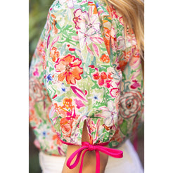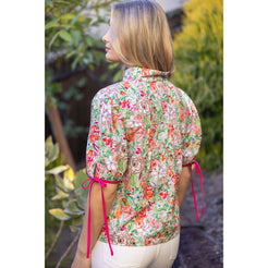 Embrace effortless spring style with this charming floral print top. The split neckline with contrast trim adds a sophisticated edge, while adjustable sleeve ties let you customize your look. Crafted from lightweight woven fabric, it drapes beautifully with a relaxed fit that moves with you. Whether you're dressing up for brunch or keeping it casual, this versatile piece transitions seamlessly from day to night. The vibrant floral pattern brings instant personality to any wardrobe, making it the go-to choice for anyone seeking comfortable, on-trend pieces that feel as good as they look.