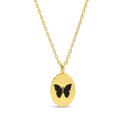 Capture the beauty of transformation with our Etched Butterfly Oval Pendant Necklace. Featuring a finely detailed but...