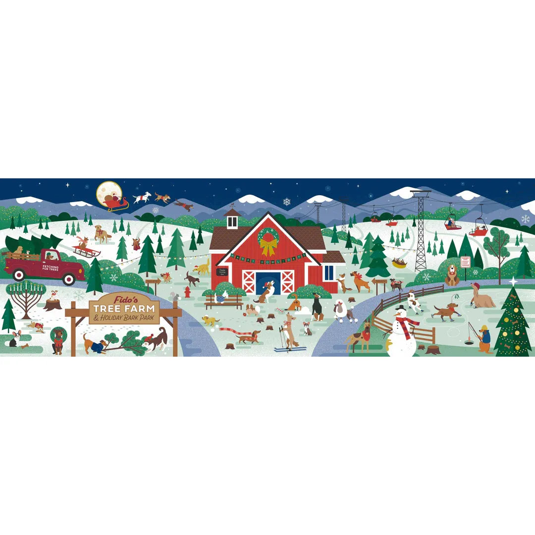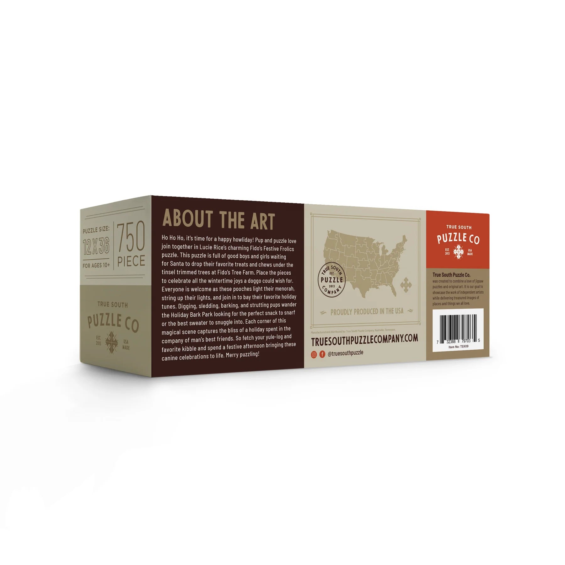 Ho Ho Ho, it's time for a happy howliday! Pup and puzzle love join together in Lucie Rice's charming Fido's Festive Frolics puzzle. This puzzle is full of good boys and girls waiting for Santa to drop their favorite treats and chews under the tinsel trimmed trees at Fido's Tree Farm.