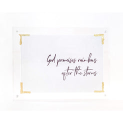 Each piece is handmade and features beautiful recycled paper with torn edges, hand-scripted style lettering in black, elegant gold leaf corners & displayed in a stunning, high-quality acrylic frame.