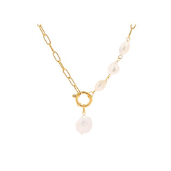 Elevate your everyday style with the Gracie Necklace, a delicate 18k gold-plated stainless steel piece featuring a charming pearl detail. This versatile accessory combines timeless elegance with modern durability, resisting tarnish and fading. Perfect for layering or wearing solo, the Gracie adds a touch of sophistication to any outfit. Whether you're dressing up for a special occasion or keeping it casual, this beautiful necklace is a must-have staple for your jewelry collection.