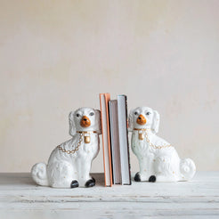 This elegant set of figurines showcases dolomite Staffordshire dog silhouettes with hand-painted detail. Display in a living space of any style from traditional to eclectic. Wipe clean with dry cloth.