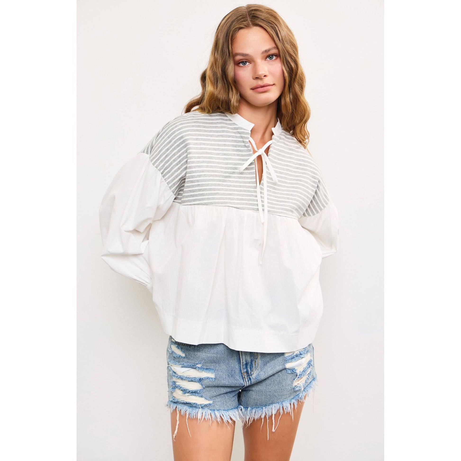 The Jaiden Top is the perfect blend of style and comfort. With its flowy design and lightweight material, you'll feel effortlessly chic all day long. The long sleeves add a touch of sophistication, making it a versatile piece for any occasion. Upgrade your wardrobe with this must-have top!