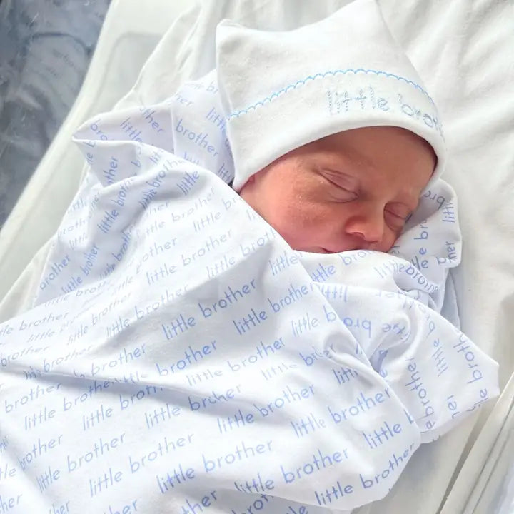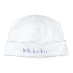 Celebrate the arrival of little brother with this charming embroidered hat—a heartfelt keepsake that marks this special milestone. Crafted with care, the delicate embroidery adds a personal touch that makes it perfect for photos, outings, or simply cherishing those precious early moments. Soft and comfortable for sensitive newborn skin, this hat is an ideal gift for new parents or a meaningful addition to any baby's wardrobe.