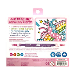 Sparkle, create, and erase with the Make No Mistake! Sparkle Glittery Erasable Markers! This set of 12 glitter markers lets you add dazzling color to your artwork, notes, and doodles—then fix any mistakes with ease. Each erasable marker features glittery ink on one end and a magic eraser tip on the other, so you can easily correct, refine your designs, and create negative space in your colorful creations.