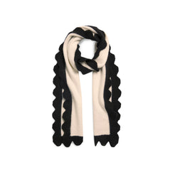 Wrap yourself in cozy style with the Melody Scarf, featuring the same scalloped charm and playful colorblocking as its matching beanie. This oversized knit scarf is made for bundling up in serious comfort while still turning heads. The soft, warm texture and bold trim make it a standout piece for winter layering. Whether you're braving the cold or accessorizing a laid-back look, this scarf adds instant flair.