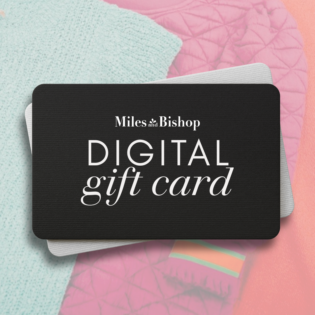 This is a digital gift card good for both online and in-store at Miles and Bishop. After purchasing, you will be emai...