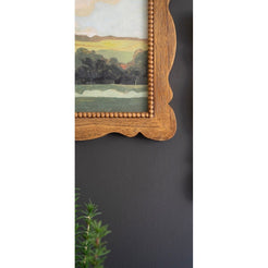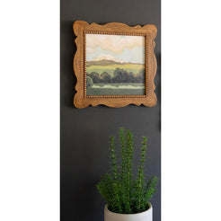 This natural wood-framed landscape print shows off shades of green. The wavy wooden frames accent these landscapes th...