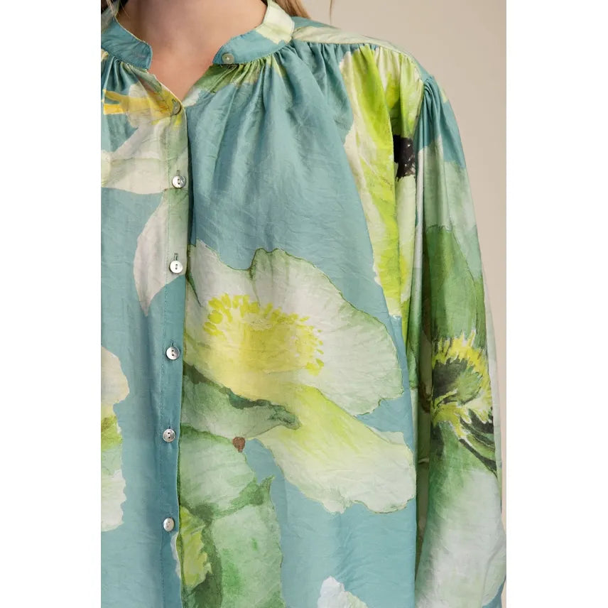 Elevate your everyday wardrobe with this stunning neck band long sleeve voluminous blouse. The generous, flowing silh...