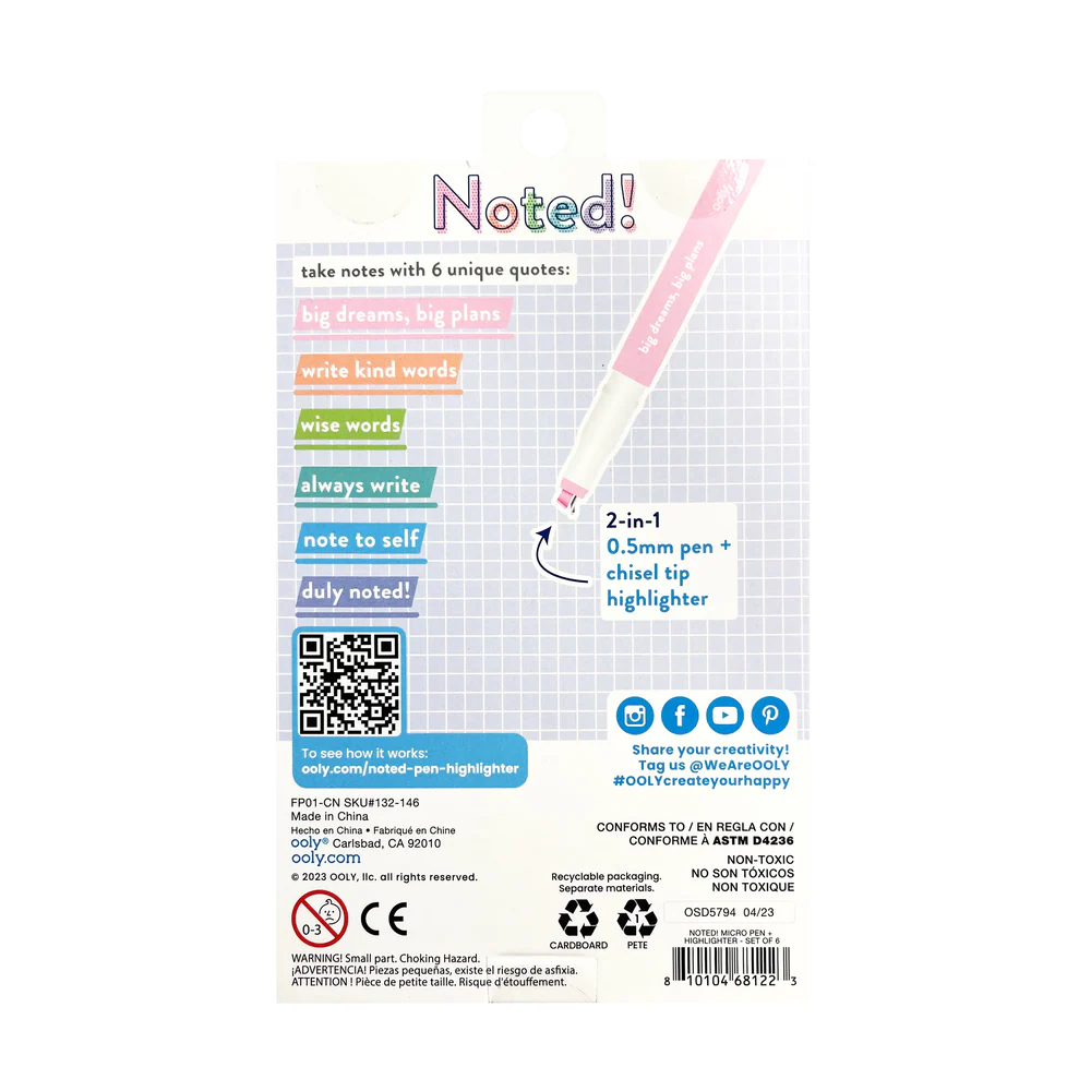 Is it a pen or a highlighter? It’s magically both! This 2-in-1 pen and highlighter is designed with a micro fine pen tip and a highlighter chisel tip, so you get to decide which to use! This set includes six dual tip pen highlighters in all - each in a different pastel color and sporting a different inspirational message! Decisions, decisions… When it comes to this 2-in-1 pen highlighter, you get to choose between utilizing its micro fine pen tip or its chiseled highlighter tip. These unique dual tip pen highlighters change the game in note taking with their convenient design! The set includes six different pastel colored highlighters and pens, each displaying an uplifting message on its barrel like, ‘write kind words.’ These are a must have for class time, study time, and… well… anytime!