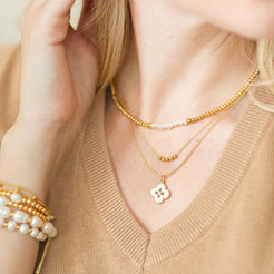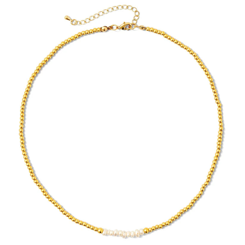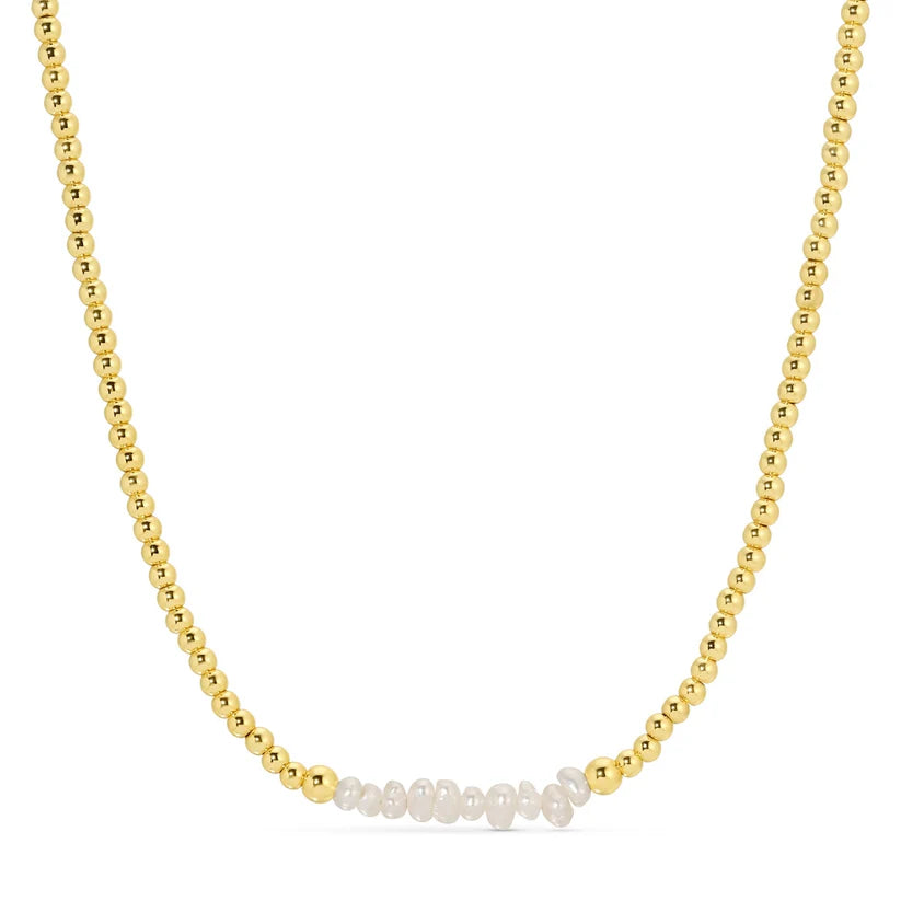 Elevate your style with the Pearl Accented Beaded Necklace, expertly crafted with shimmering freshwater pearls and vibrant beads, all finished with an elegant18k gold platedclasp.