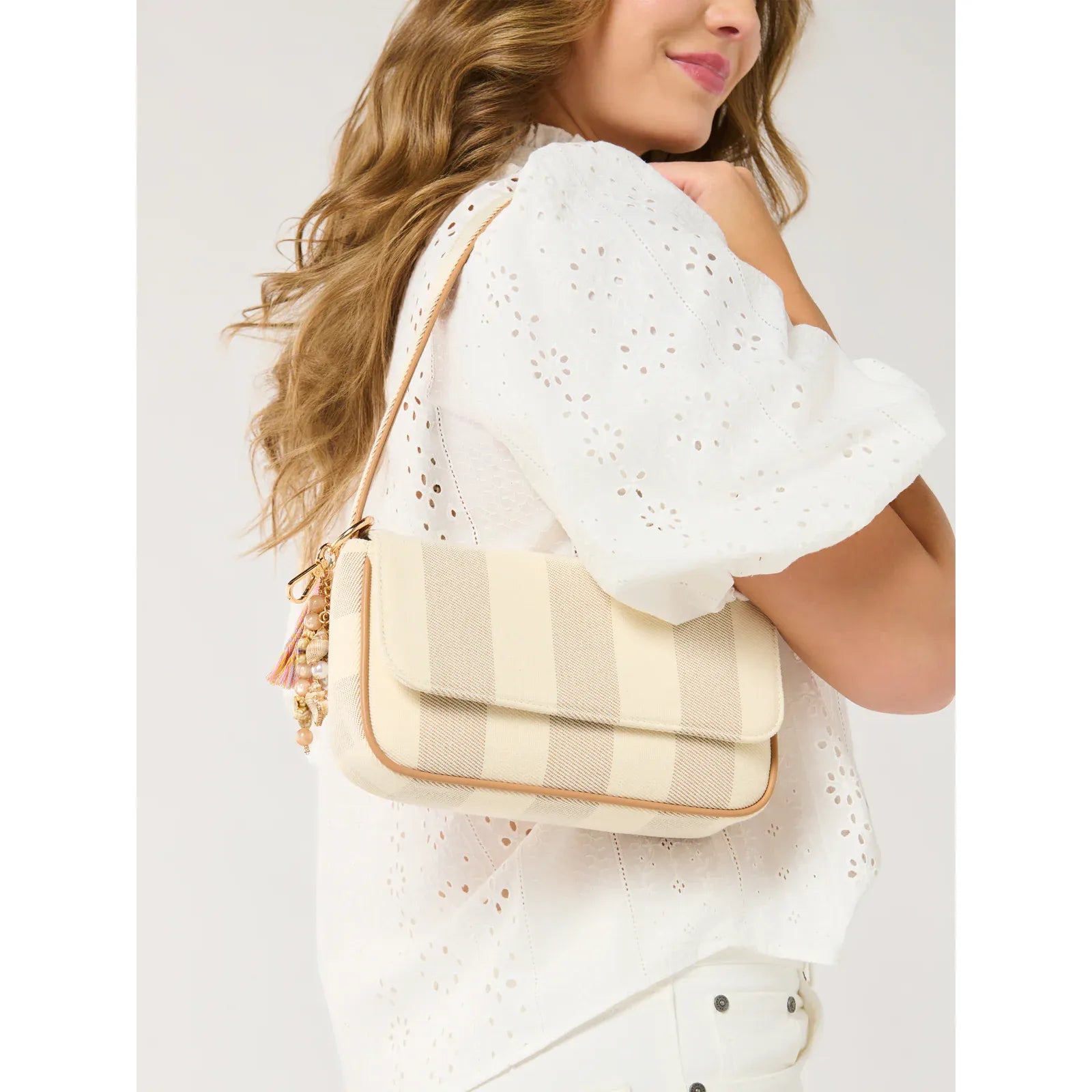 We love the Positano Shoulder Bag for its playful stripes and effortless vibe—it’s like summer in bag form! The easygoing single strap makes it a grab-and-go favorite, and the neutral tones pair perfectly with both casual and dressy looks. It’s roomy enough for the essentials, but compact enough to feel sleek and polished. Plus, the structured silhouette gives it just the right amount of sophistication.