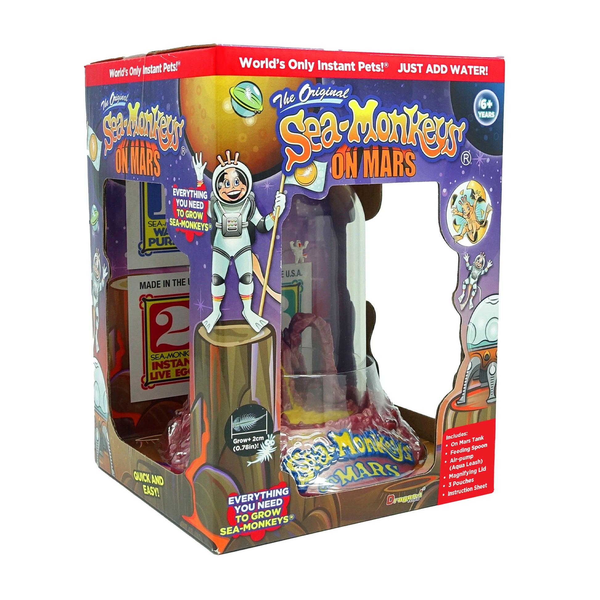 • The original world’s easiest to care for, no-mess pet • Blast off to Mars and watch your Sea-Monkeys thrive in a cool, cosmic landscape! • Get an out-of-this-world view with the built-in magnifier, showcasing your pets and their Martian home • Includes water purifier, instant live eggs, Sea-Monkeys food, feeding spoon, air pump, and instructions