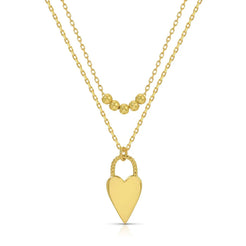 The necklace features two perfectly layered chainsthat gracefully complement each other. One chain offers a subtle, minimalist look, while the second showcases a charmingheart pendant. This daintygold heart charmadds a touch of classic symbolism and sweet elegance, making it a truly versatile piece. The combined effect creates a graceful, cascading look that's ideal for enhancing any neckline.