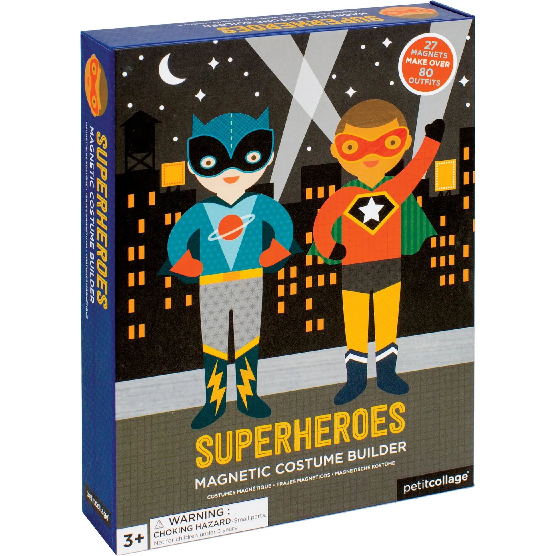 Help these friends get ready to save the day! Choose their costumes and accessories with this hero-packed magnetic dress-up set, including two magnetic figures, two wooden stands, 27 magnetic pieces and a secret hide-out. Shhhhh!