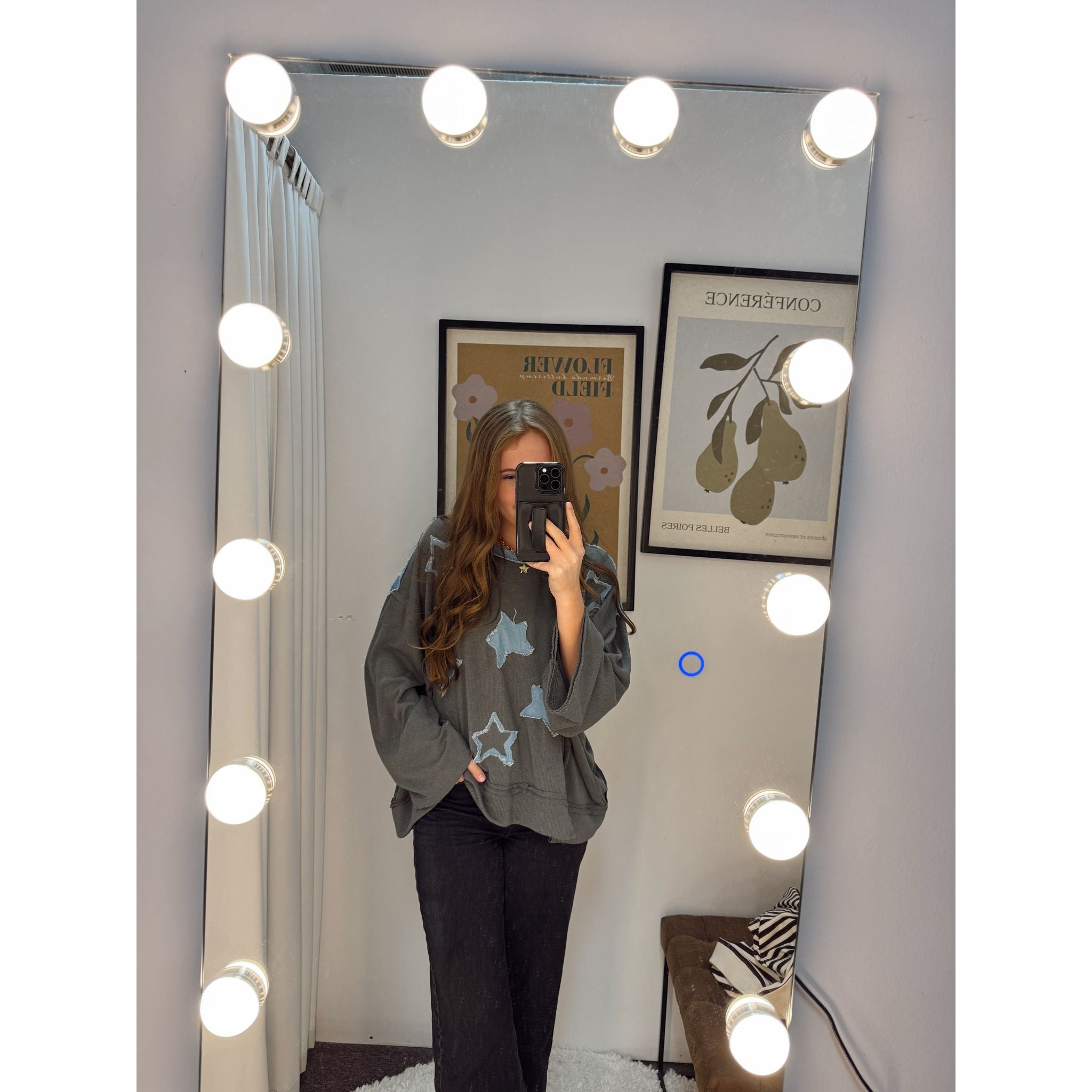 Elevate your wardrobe with the Suzanna Top. This statement top boasts star details and long sleeves for added flair. And with its cozy fit, it's the perfect addition to your collection. Feel confident and stylish in the Suzanna Top.