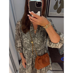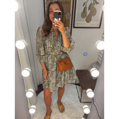 Experience effortless elegance with the Talia Dress. The flowy and lightweight fabric drapes beautifully, while the unique print adds a touch of sophistication. Perfect for any occasion, this dress exudes class and style. Elevate your wardrobe with the Talia Dress today!