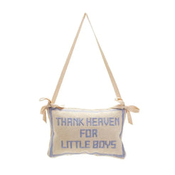 Hang these small, adorable pillows in your baby's room or on the door handle of the nursery. Made of 100% cotton and a velvet backing with beautiful embroider details. Makes for a great baby shower gift!
