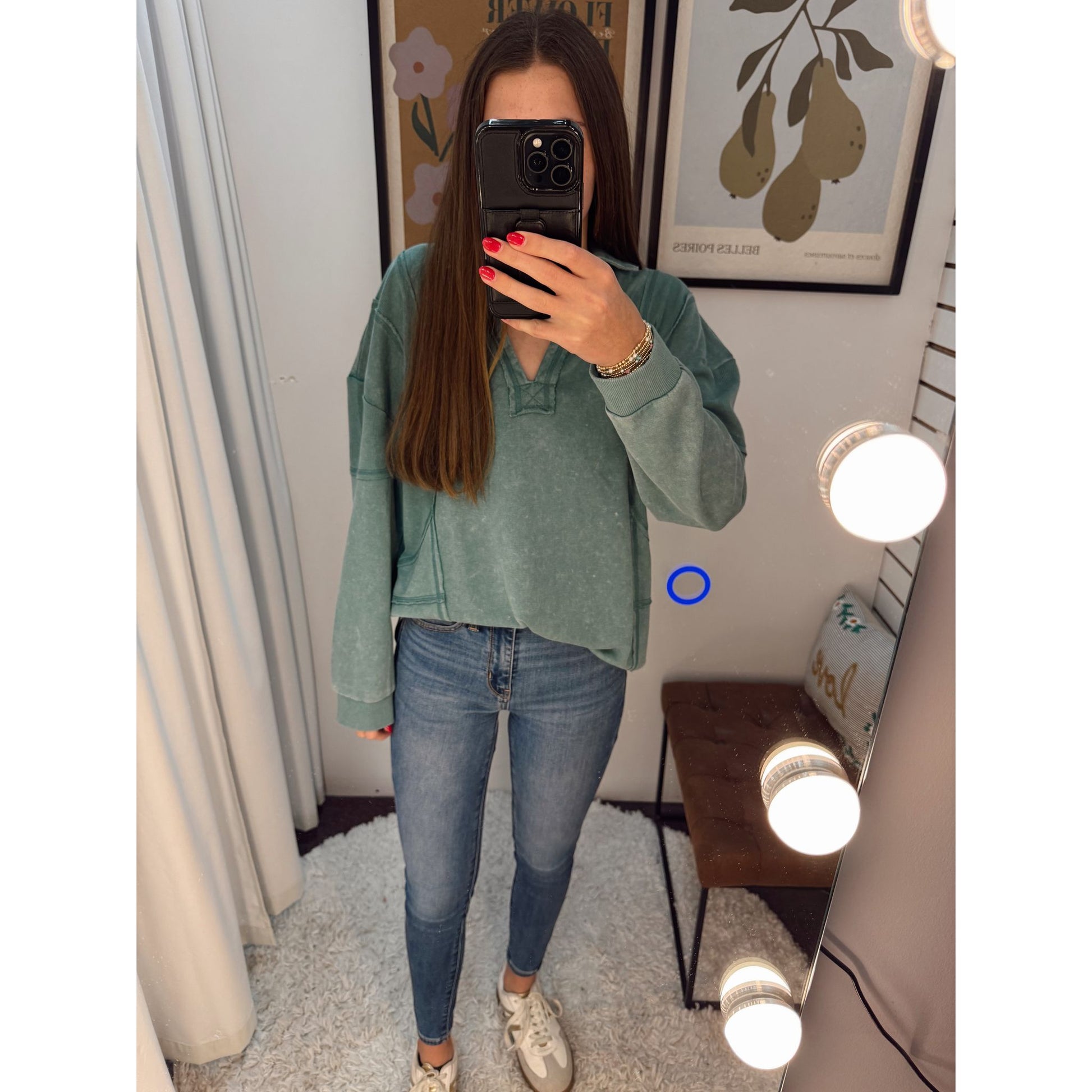 Elevate your style with the Alix Top in a refreshing Sage color. Its elegant collared design and long sleeves make it perfect for any occasion, from casual brunches to upscale dinners. Make a statement with this versatile and effortlessly chic top!