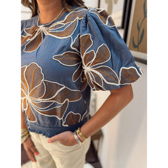 The Krista Top brings the perfect touch of fall with its charming pattern and playful puff sleeves. Its round neck ma...