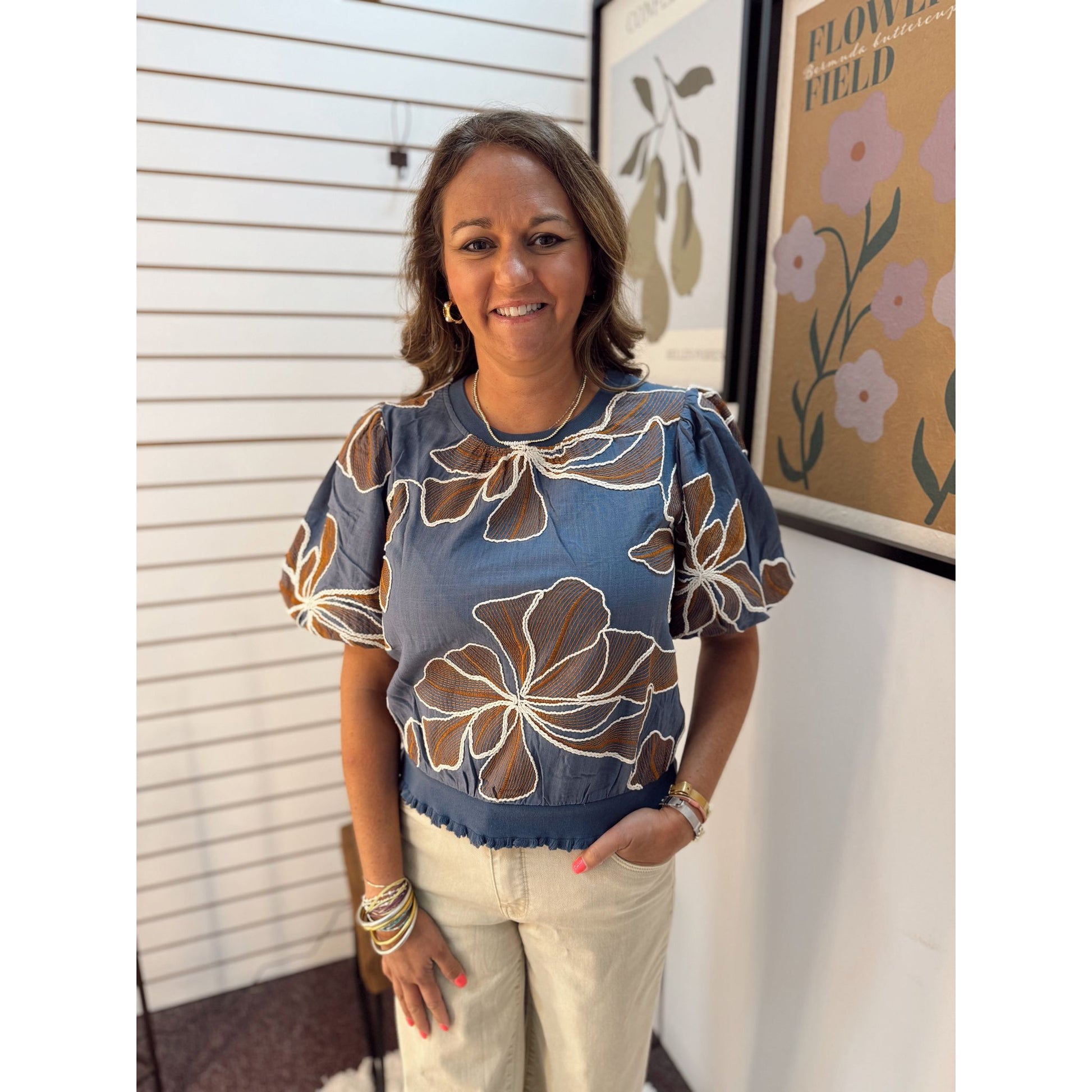 The Krista Top brings the perfect touch of fall with its charming pattern and playful puff sleeves. Its round neck makes it effortlessly versatile for dressing up or down. With its cute and comfortable design, this top is an easy choice for any occasion.